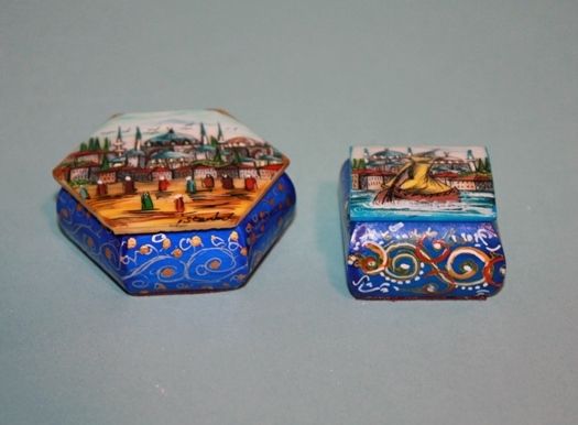 139 Two Hand-painted Camel Bone Trinket Boxes Description