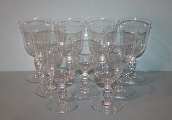 Nine Clear Wine Glasses, six 6" height, four 5" h. Nine Clear Wine Glasses, six 6" height, four 5" h.