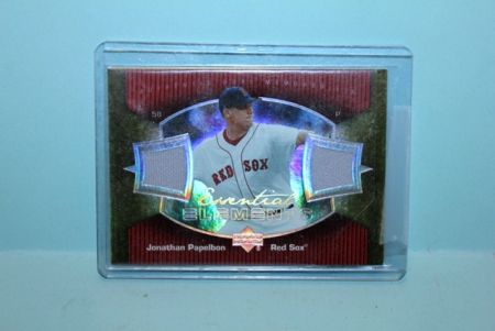 Baseball Player Card in Plastic Case; Upper Deck Dual Memorabilia Essential Elements 2007 Jonathan Papelbon Baseball Player Card in Plastic Case; Upper Deck Dual Memorabilia Essential Elements 2007 Jonathan Papelbon