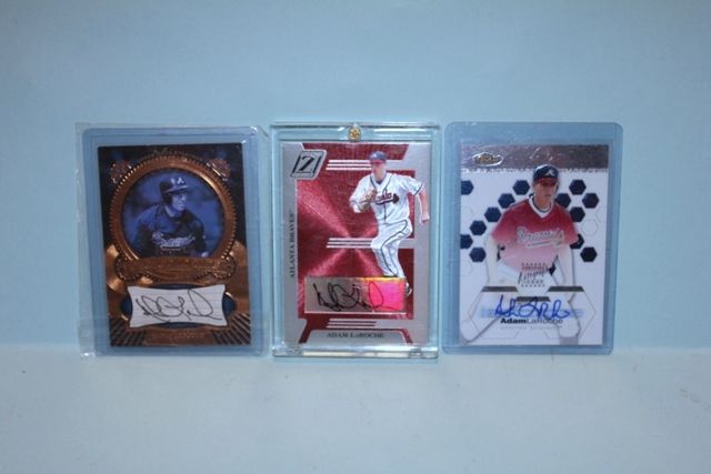 Three Baseball Player Cards In Plastic Cases, Topps finest Autographed Adam Laroche 2003, Upper Deck Etched in Time Autographed Adam Laroche 2004, Donruss Zenith Autographed Adam Laroche 2005 Three Baseball Player Cards In Plastic Cases, Topps finest Autographed Adam Laroche 2003, Upper Deck Etched in Time Autographed Adam Laroche 2004, Donruss Zenith Autographed Adam Laroche 2005