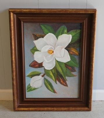 Framed Painting of Magnolias, signed. 19 1/2" w x 25 1/2" h. Framed Painting of Magnolias, signed. 19 1/2" w x 25 1/2" h.