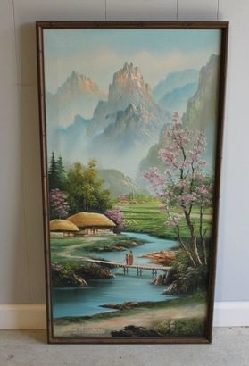 Framed Oriental Painting by L. Sung Kyu, Spring, signed lower right. 19" w. x 37" h. Framed Oriental Painting by L. Sung Kyu, Spring, signed lower right. 19" w. x 37" h.