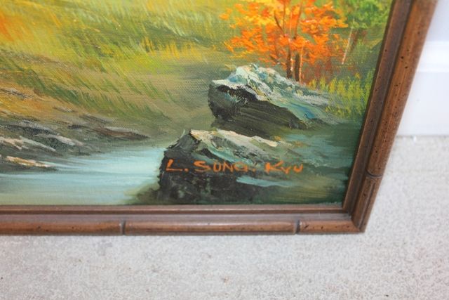 Framed Oriental Painting by L. Sung Kyu, Autumn, signed lower left. 19" w. x 37" h. Framed Oriental Painting by L. Sung Kyu, Autumn, signed lower left. 19" w. x 37" h.