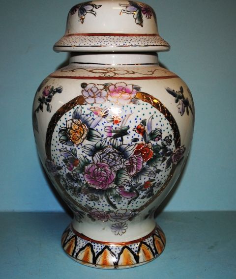 Pair of Hand Painted Ginger Jars, 13" h. Pair of Hand Painted Ginger Jars, 13" h.