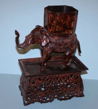 Ornate Metal Elephant Floral Metal Stand, Faux Bronze Color. 10 1/2" w. x 14" h. Ornate Metal Elephant Floral Metal Stand, Faux Bronze Color. 10 1/2" w. x 14" h.
