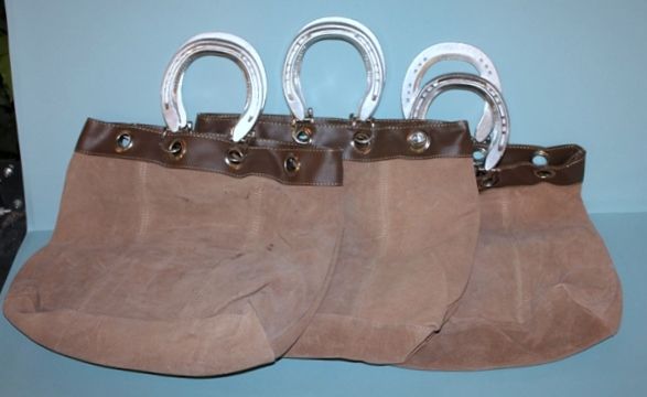 325 Three Brown Suede Leather Horseshoe Handled Bags Description
