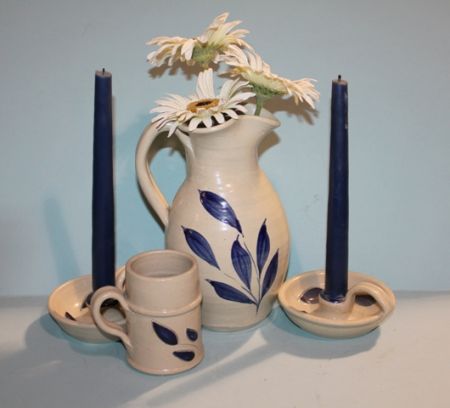 Two Pieces of Williamsburg Pottery, largest 7" H., also includes two Williamsburg pottery candles Two Pieces of Williamsburg Pottery, largest 7" H., also includes two Williamsburg pottery candles