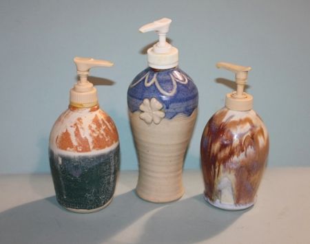 Three Pottery Soap Dispensers Three Pottery Soap Dispensers