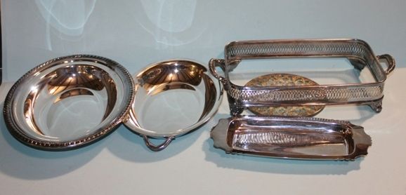 Group of Silver Trays and Buffet Server. 6" to 11" w. Group of Silver Trays and Buffet Server. 6" to 11" w.