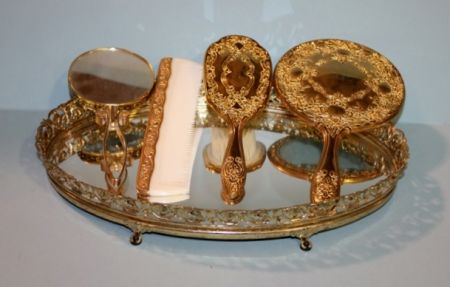497 Mirror Plateau with Matching Brush, Mirror, Comb and Hand Mirror Description