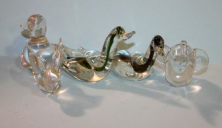 Collection of Clear Glass Animal Figurines, pair of swans marked Murano, Italy, duck, rabbit and elephant marked Interpur. 4 1/2" h. Collection of Clear Glass Animal Figurines, pair of swans marked Murano, Italy, duck, rabbit and elephant marked Interpur. 4 1/2" h.
