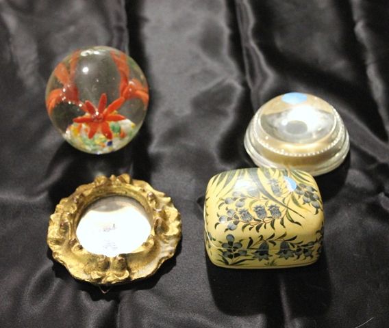 Two Paperweights, Mirror and Jewelry Box Two Paperweights, Mirror and Jewelry Box