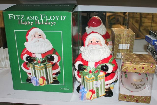 619 Fritz and Floyd Santa Cookie Jar and 2004 Christmas Glass Ball Description