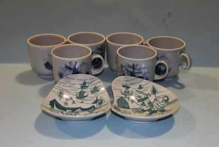 Group of Six Demitasse Cups marked "Made in Holland" and Two Hoyrup Denmark Bowls Group of Six Demitasse Cups marked "Made in Holland" and Two Hoyrup Denmark Bowls
