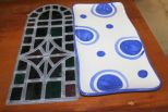 Gail Pittman Tray and Stained Glass. Stain glass is 6" w. x 15 1/2" h., Pittman tray is 7" w x 14 1/2" h. Gail Pittman Tray and Stained Glass. Stain glass is 6" w. x 15 1/2" h., Pittman tray is 7" w x 14 1/2" h.