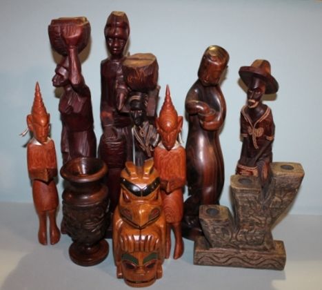 Group of Ten Decorative Wooden Figurines From Haiti; 12" to 15" h. Group of Ten Decorative Wooden Figurines From Haiti; 12" to 15" h.