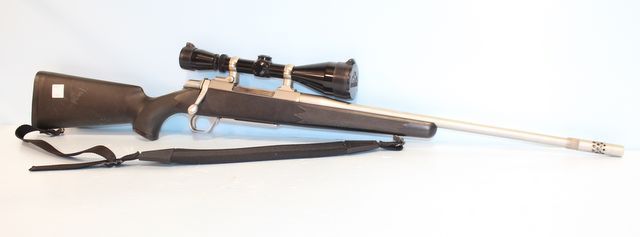 Synthetic stock, stainless barrel, Leupold scope. FFL paper work and pickup of the gun will be at Pawn Masters. The Fee will be 25 dollars for the FFL paper work. Synthetic stock, stainless barrel, Leupold scope. FFL paper work and pickup of the gun will be at Pawn Masters. The Fee will be 25 dollars for the FFL paper work.