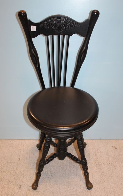 120 Antique Painted Black Piano Chair with Metal Claw Feet with Balls