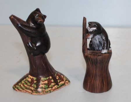 Bear, 5" h. ; raccoon, 4 1/2" h. Bear, 5" h. ; raccoon, 4 1/2" h.