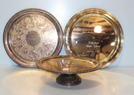400 Two Silverplate Trays, Silverplate Cake Stand