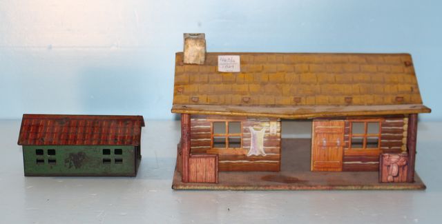 Log cabin, 11" w., 7" d., 6" h. ; 2 1/2" x 5" x 2 1/2" h. Log cabin, 11" w., 7" d., 6" h. ; 2 1/2" x 5" x 2 1/2" h.