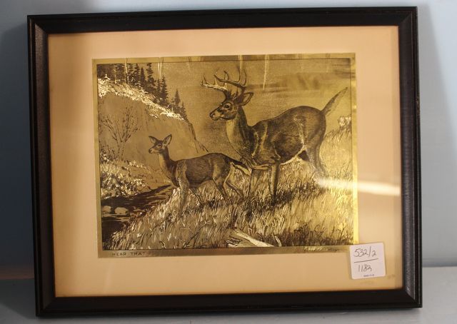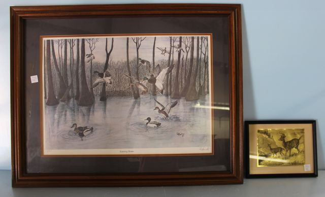 532 Print of Ducks "Evening Brake" Signed R.W. Hamilton, Small Picture of Deer Entitled "Hear That"