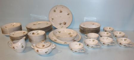Includes; eight dinner plates, eight salad plates, eight bowls, eight cups, eights saucers, creamer, sugar, eight berry bowls, platter, vegetable bowl Includes; eight dinner plates, eight salad plates, eight bowls, eight cups, eights saucers, creamer, sugar, eight berry bowls, platter, vegetable bowl
