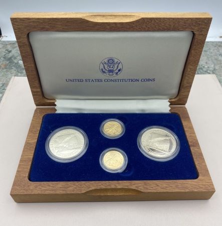 1987 United States Constitution Set of 4 Coins 2x 1987-P USA the Constitution Bicentennial Dollar (24.06g EACH of Silver) 2x 1987 USA Constitution Bicentennial Gold $5 (7.52g EACH of Gold) 1987 United States Constitution Set of 4 Coins 2x 1987-P USA the Constitution Bicentennial Dollar (24.06g EACH of Silver) 2x 1987 USA Constitution Bicentennial Gold $5 (7.52g EACH of Gold)
