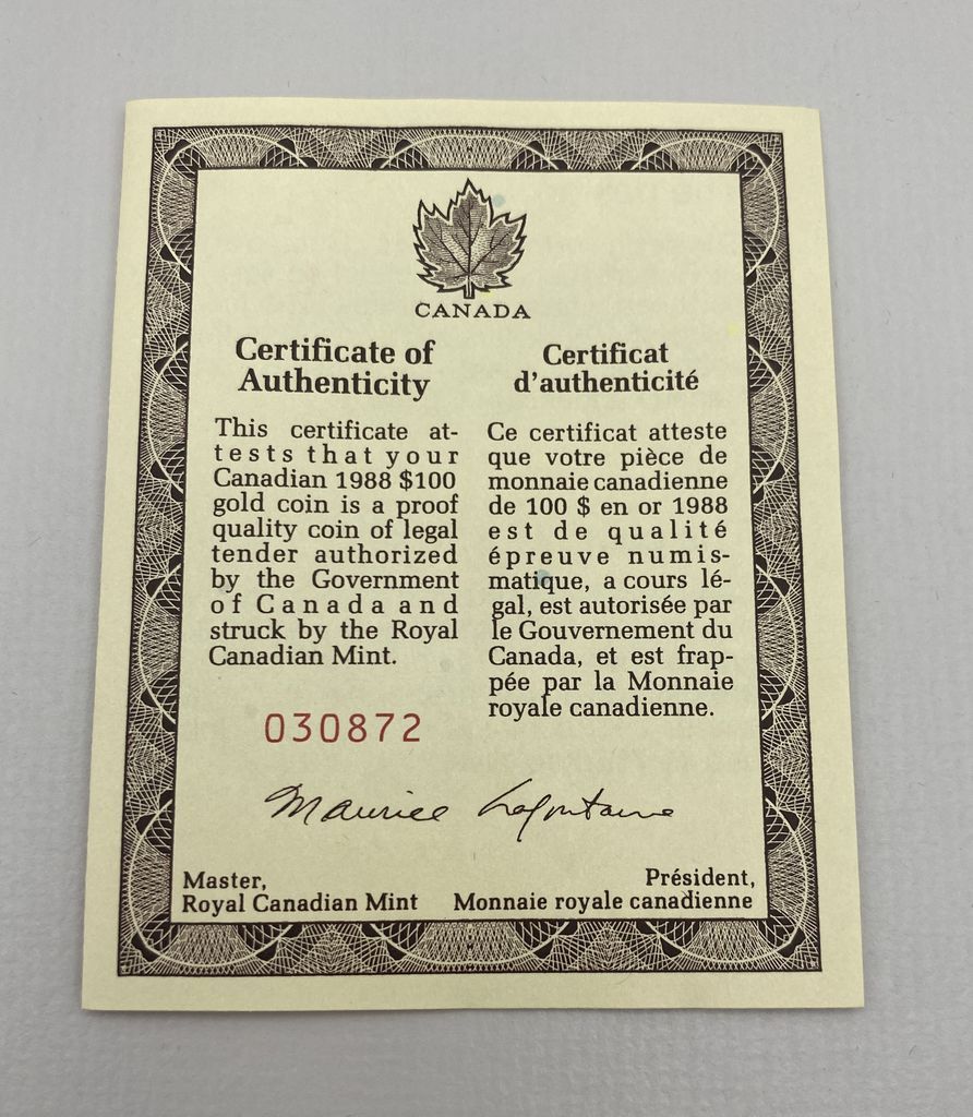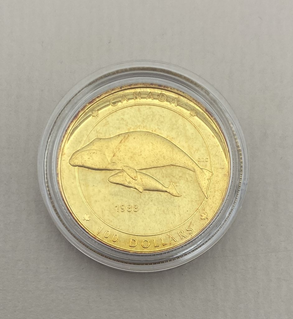 $100 Whale and Calf, 1x Canadian Gold Coin (7.775g of gold & 5.563g Of Silver) $100 Whale and Calf, 1x Canadian Gold Coin (7.775g of gold & 5.563g Of Silver)