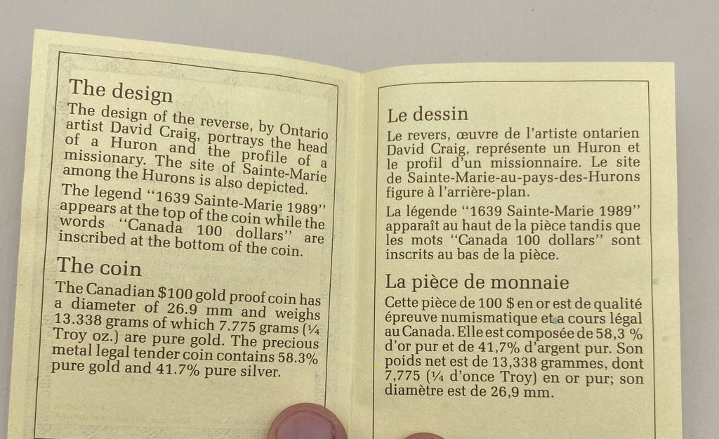 $100 1639 Sainte-Marie, 1x Canadian Gold Coin (7.775g of gold & 5.563g Of Silver) $100 1639 Sainte-Marie, 1x Canadian Gold Coin (7.775g of gold & 5.563g Of Silver)