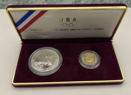 1988 United States Mint Olympic coin set, 1x 1988-W USA $5 XXIV Summer Olympic, Games, Seoul (7.52g Of Gold) 1x 1988-S USA Olympics (Seoul) Dollar (24.06g Of Silver) 1988 United States Mint Olympic coin set, 1x 1988-W USA $5 XXIV Summer Olympic, Games, Seoul (7.52g Of Gold) 1x 1988-S USA Olympics (Seoul) Dollar (24.06g Of Silver)