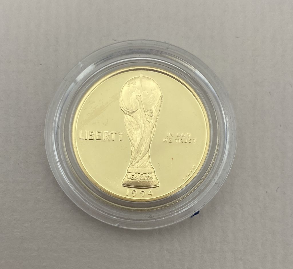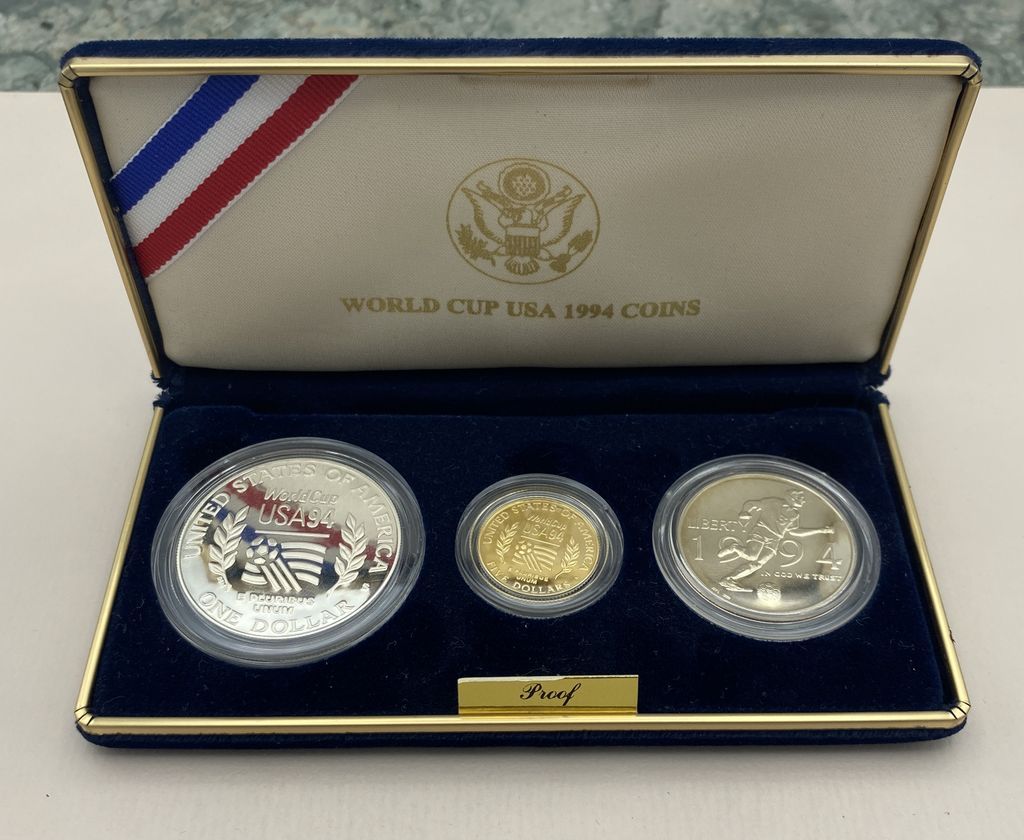 1994 USA World Cup Coins Proof Set, 1x 1994-W USA $5, 1994 FIFA World Cup (7.52g of Gold) 1x 1994-S USA World Cup Silver Dollar (24.06g Of Gold) 1x 1994-P USA World Cup Tournament Half Dollar (Clad) 1994 USA World Cup Coins Proof Set, 1x 1994-W USA $5, 1994 FIFA World Cup (7.52g of Gold) 1x 1994-S USA World Cup Silver Dollar (24.06g Of Gold) 1x 1994-P USA World Cup Tournament Half Dollar (Clad)