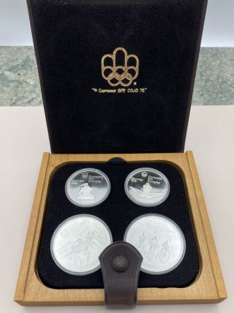 1972 Montreal Olympic Coin Set 2x $10 Canada XXI Summer Olympic Games, Montreal 1976 - Map of the World (44.96g EACH of Silver) 2x $5 Canada XXI Summer Olympic Games, Montreal 1976 - Map of North America (22.48g EACH of silver) 1972 Montreal Olympic Coin Set 2x $10 Canada XXI Summer Olympic Games, Montreal 1976 - Map of the World (44.96g EACH of Silver) 2x $5 Canada XXI Summer Olympic Games, Montreal 1976 - Map of North America (22.48g EACH of silver)
