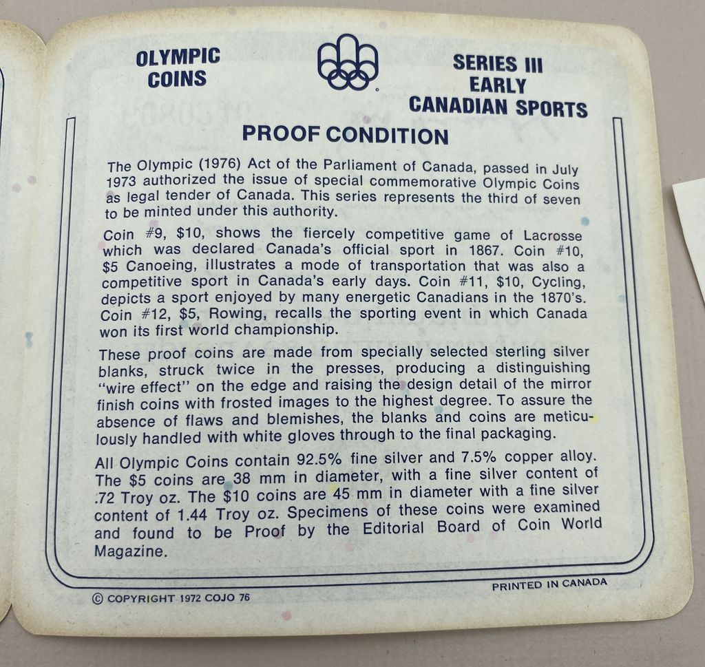 1972 Montreal Olympic Coin Set 2x $10 Canada XXI Summer Olympic Games, Montreal 1976 - Map of the World (44.96g EACH of Silver) 2x $5 Canada XXI Summer Olympic Games, Montreal 1976 - Map of North America (22.48g EACH of silver) 1972 Montreal Olympic Coin Set 2x $10 Canada XXI Summer Olympic Games, Montreal 1976 - Map of the World (44.96g EACH of Silver) 2x $5 Canada XXI Summer Olympic Games, Montreal 1976 - Map of North America (22.48g EACH of silver)