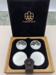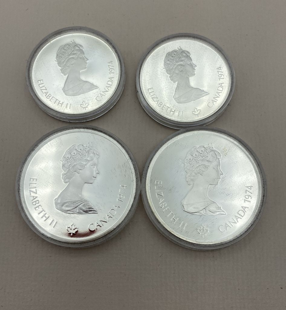 1972 Montreal Olympic Coin Set 2x $10 Canada XXI Summer Olympic Games, Montreal 1976 - Map of the World (44.96g EACH of Silver) 2x $5 Canada XXI Summer Olympic Games, Montreal 1976 - Map of North America (22.48g EACH of silver) 1972 Montreal Olympic Coin Set 2x $10 Canada XXI Summer Olympic Games, Montreal 1976 - Map of the World (44.96g EACH of Silver) 2x $5 Canada XXI Summer Olympic Games, Montreal 1976 - Map of North America (22.48g EACH of silver)