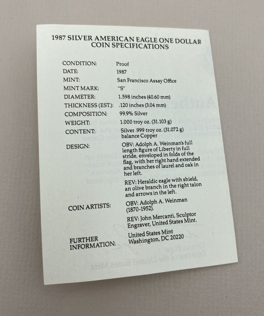 1987 1 oz. Silver American Eagle Proof 1987 1 oz. Silver American Eagle Proof