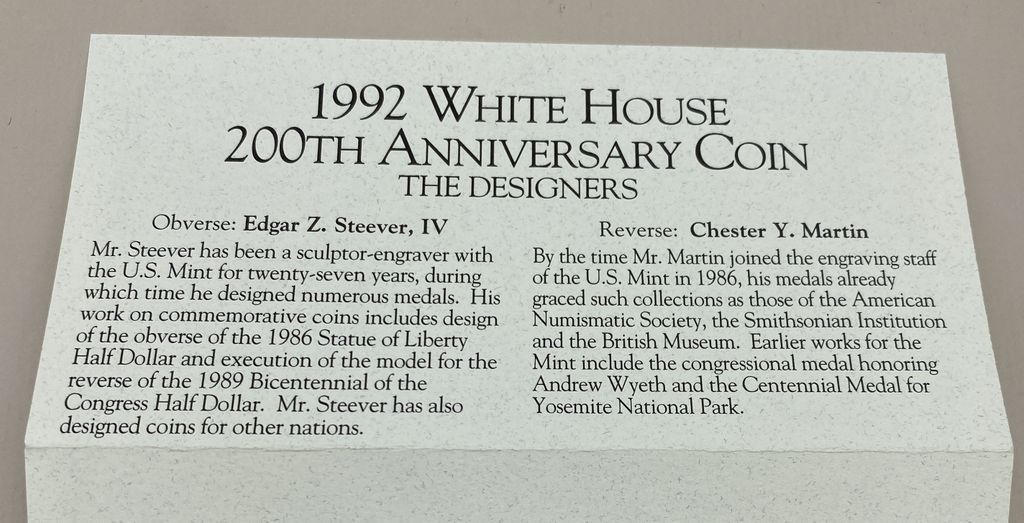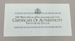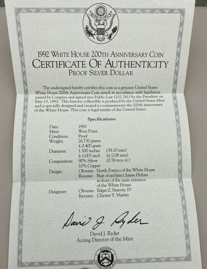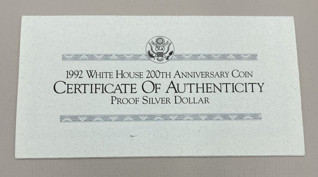 1992-W Proof White House 200th Anniversary Dollar 1x White House Coin (24.06g of Silver) 1992-W Proof White House 200th Anniversary Dollar 1x White House Coin (24.06g of Silver)