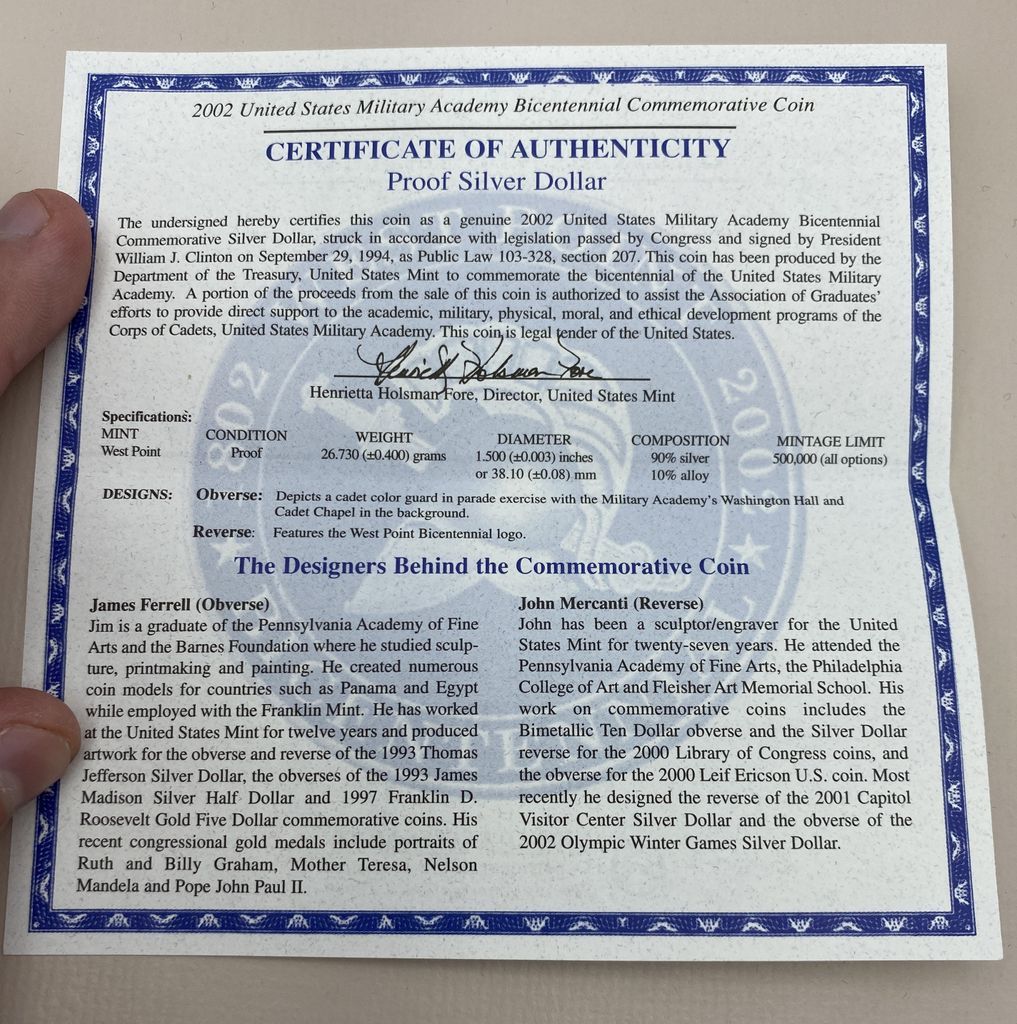 2002 U.S. Military Academy Bicentennial Dollar 1x Silver Dollar (24.06g of Silver) 2002 U.S. Military Academy Bicentennial Dollar 1x Silver Dollar (24.06g of Silver)