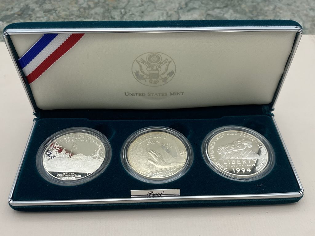 1994 U.S. Veterans 3-Coin Proof Set 3x Silver Dollars (24.06g EACH of Silver) 1994 U.S. Veterans 3-Coin Proof Set 3x Silver Dollars (24.06g EACH of Silver)