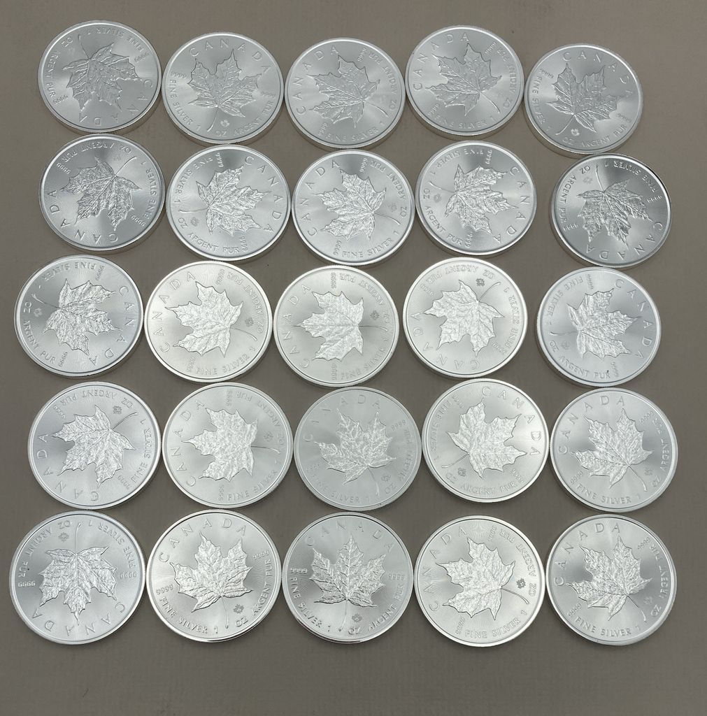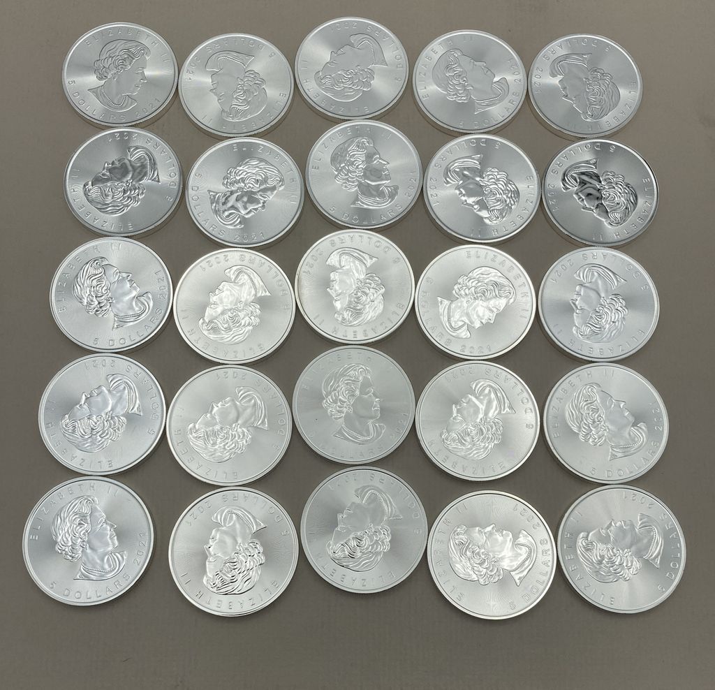 Tube of 25 Canadian Elizabeth II .999 1oz Silver Coins Tube of 25 Canadian Elizabeth II .999 1oz Silver Coins