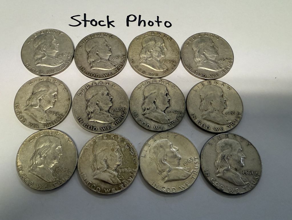 12 Pre 1964 Franklin Half Dollars 963, 1959, 1959,1954, 1958,1961, 1961, 1962, 1951, 1963, 1954, 1953 12 Pre 1964 Franklin Half Dollars 963, 1959, 1959,1954, 1958,1961, 1961, 1962, 1951, 1963, 1954, 1953
