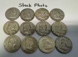 12 Pre 1964 Franklin Half Dollars 1963, 1950, 1959, 1958, 1954, 1952, 1961, 1953, 1952, 1957, 1958, 1951 12 Pre 1964 Franklin Half Dollars 1963, 1950, 1959, 1958, 1954, 1952, 1961, 1953, 1952, 1957, 1958, 1951