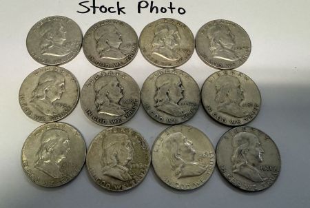 12 Pre 1964 Franklin Half Dollars 1961, 1961, 1956, 1961, 1954, 1963, 1953, 1954, 1959, 1963, 1963, 1963 12 Pre 1964 Franklin Half Dollars 1961, 1961, 1956, 1961, 1954, 1963, 1953, 1954, 1959, 1963, 1963, 1963