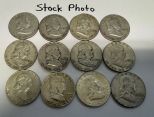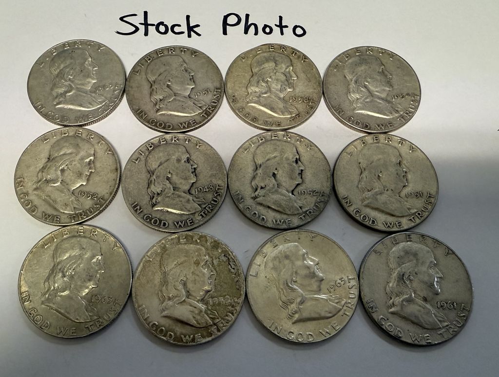 12 Pre 1964 Franklin Half Dollars1963,1963,1962,1959,1949,1954,1958,1958, 1951,1963,1961,1951 12 Pre 1964 Franklin Half Dollars1963,1963,1962,1959,1949,1954,1958,1958, 1951,1963,1961,1951