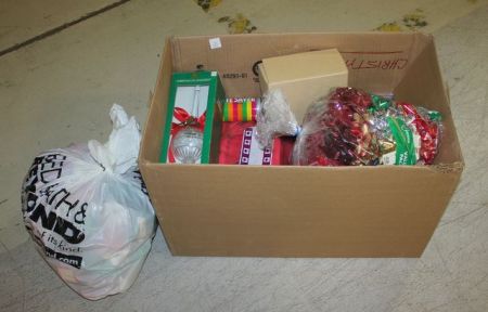 Box Lot of Christmas Bows, Candle Topper, and Napkins Box Lot of Christmas Bows, Candle Topper, and Napkins