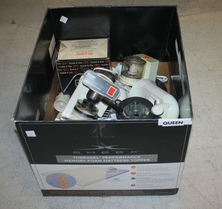 101 Box Lot of Kitchen Appliances food chopper, hand mixer, can opener, pepper mill, rice cooker, and blender.