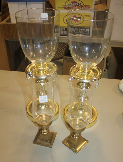 Large Hurricane Candlesticks 17"h., another pair 12"h. Large Hurricane Candlesticks 17"h., another pair 12"h.