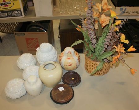 164 Covered Jars, Vase Stands, and Artificial Arrangement