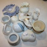 191 Porcelain Piano Box, 3" Vases, Heart Box, and Shell Dishes