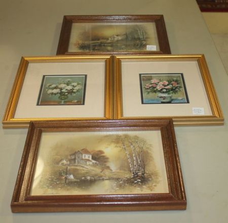 Four Prints of Houses and Flowers 9"w., 11"h., 11"w., 9"h. Four Prints of Houses and Flowers 9"w., 11"h., 11"w., 9"h.